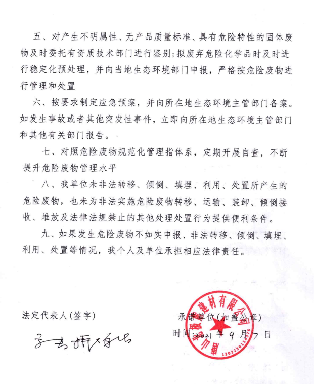 危險廢物污染環(huán)境防治主體責(zé)任承諾書
